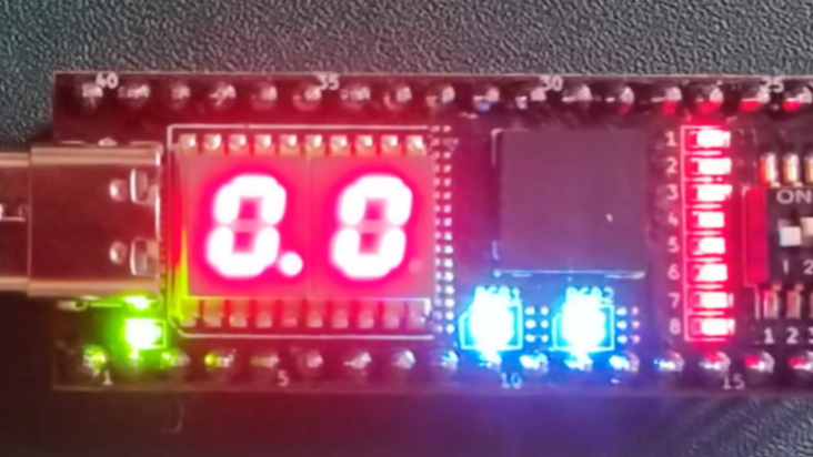 通过小脚丫FPGA核心板上的2个数码管和轻触按键制作一个秒表,通过按键来控制秒表的功能,并在数码管上显示数值。使用七段显示器作为输出设备,在小脚丫FPGA核心板上创建一个2位数秒表。 秒表应从0.0秒计数到9.9秒,然后翻转,计数值每0.1秒精确更新一次。秒表使用三个按钮输入:开始、停止、增量和清除(重置)。 开始输入使秒表开始以10Hz时钟速率递增(即每0.1秒计数一次); 停止输入使计数器停止递增,但使数码管显示当前计数器值; 每次按下按钮时,增量输入都会导致显示值增加一次,无论按住增量按钮多长时间; 复位/清除输入强制计数器值为零。