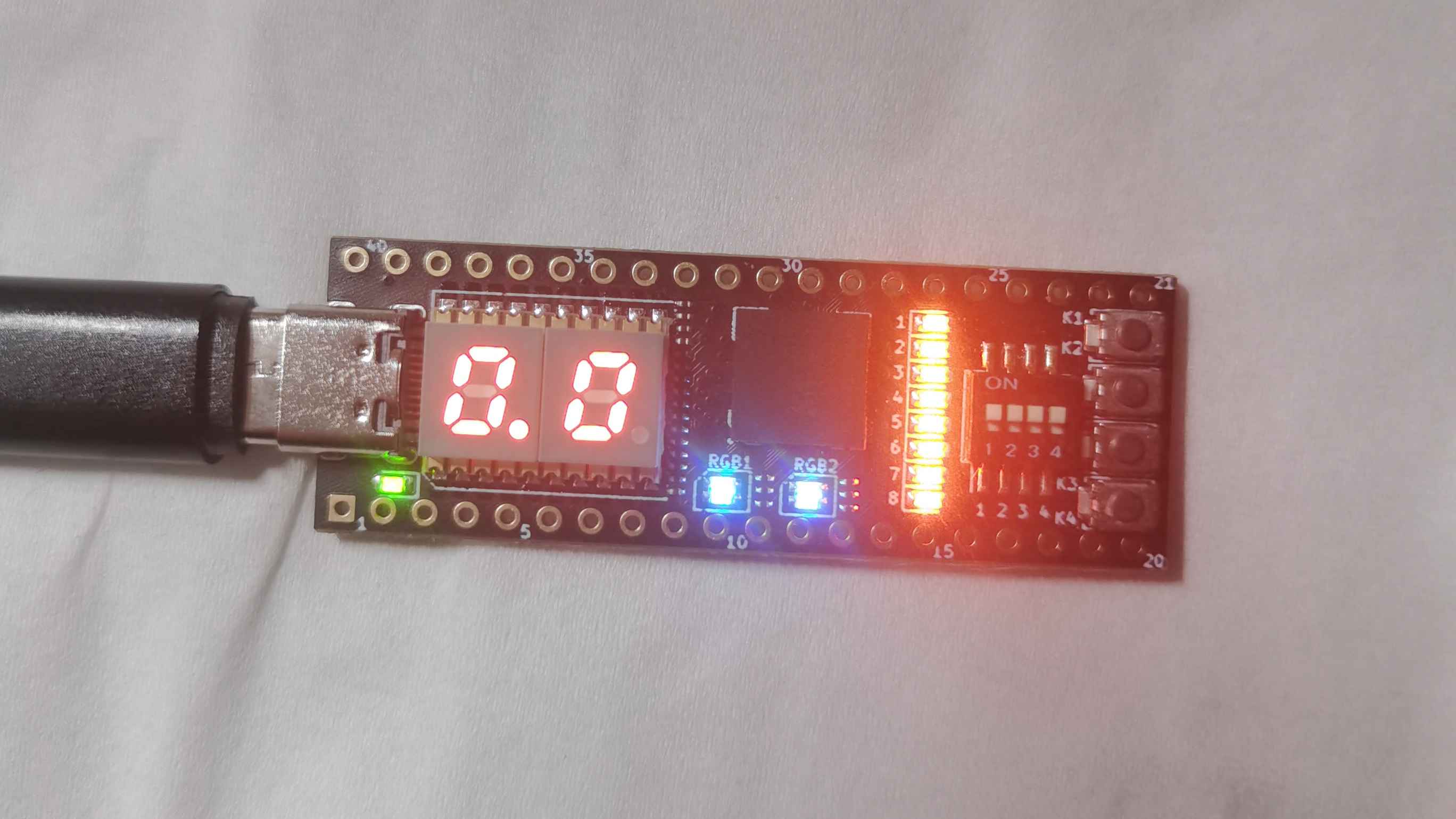 在测试多次后,发现所使用的板卡个位和十位数的位置相反,在示例项目中出现了同样的问题,因此在管脚分配中做了修改,满足了最终的要求。