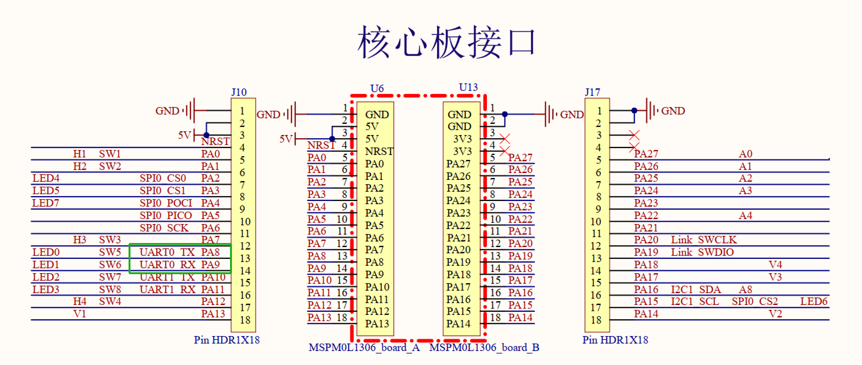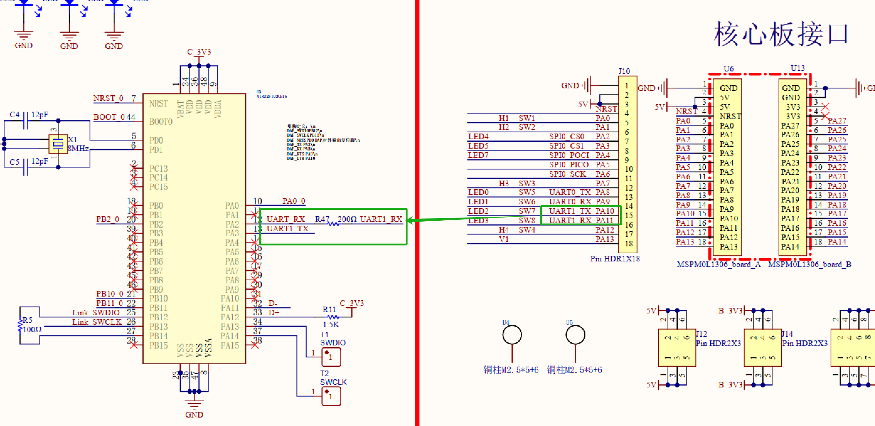 MSPM0L1306共有两个串口,UART0作为和上位机通信接口,UART1作为调试串口。