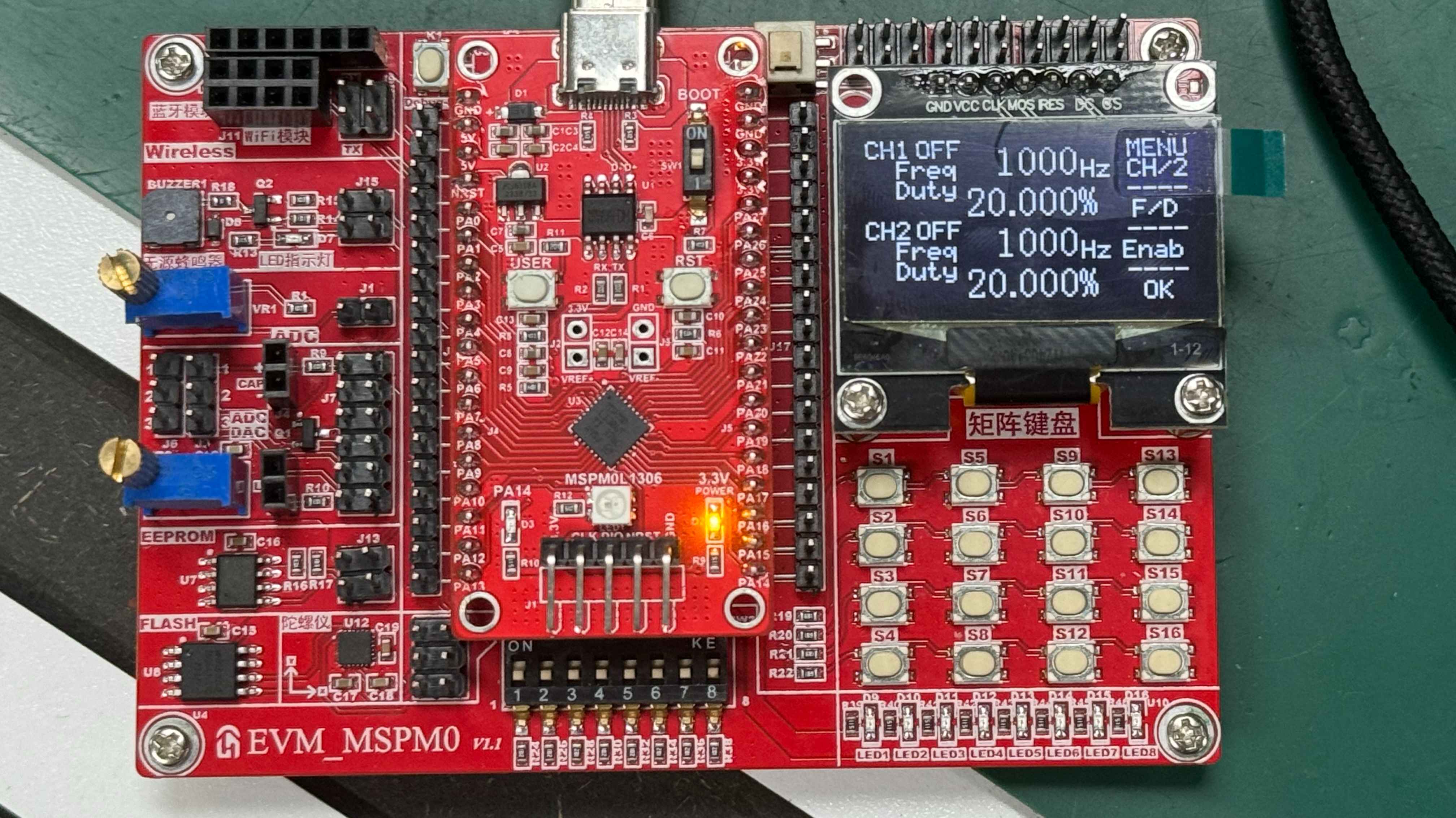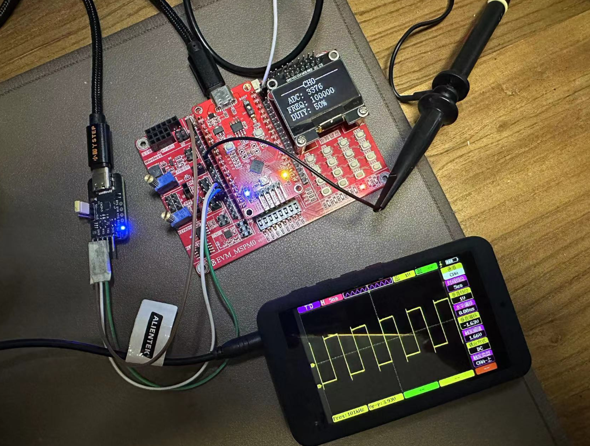 - 使用MSPM0L1306的定时器,生成2路重复频率1Hz~1MHz的PWM信号,每一路的重复频率和占空比都可独立调节。