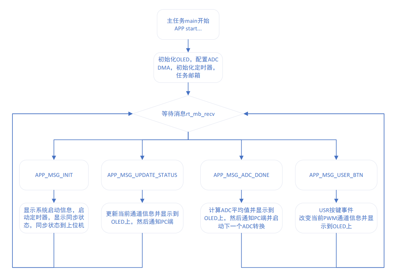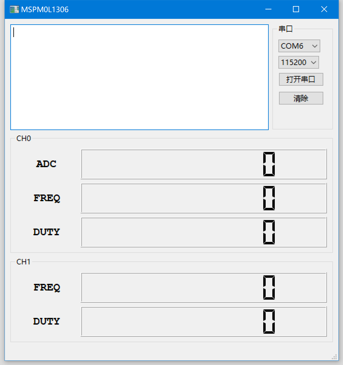 上位机主要用来实时显示运行参数,包括当前的ADC值,每个pwm通道的频率和占空比。