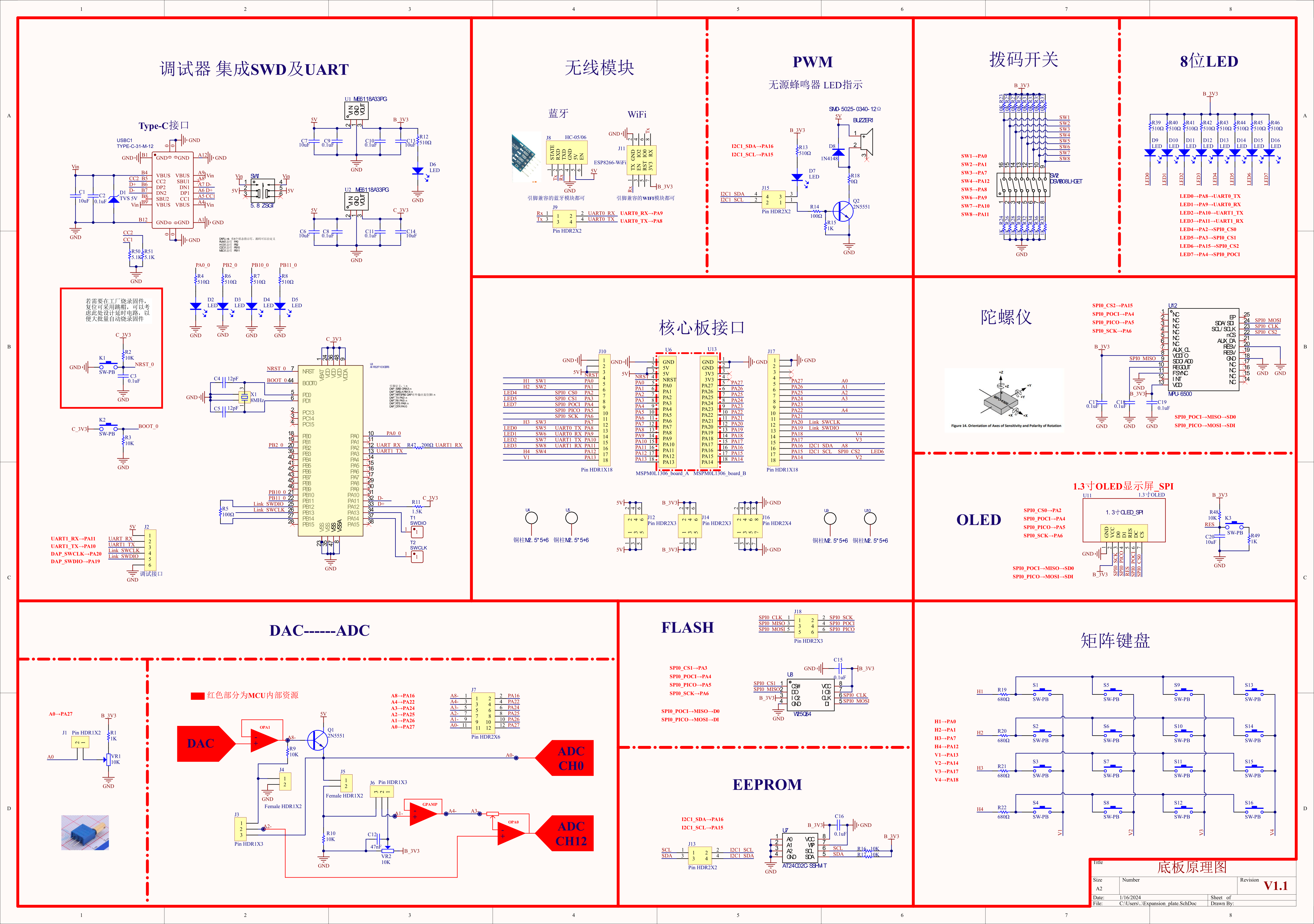 - 按键矩阵扫描,原本打算使用按键矩阵中的8个按键控制两路PWM的频率、占空比以及使能。奈何一直无法静下心来思考如何优雅地实现矩阵按键扫描以及消抖,最终使用 4 个按键 + 两个拔码开关来实现控制。