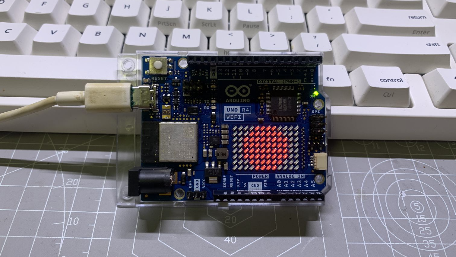 Funpack3-5 Arduino UNO-R4-WiFi LED矩阵点灯!基于Arduino UNO R4 WiFi开发板,通过魔改LED矩阵驱动库,实现单个灯珠的PWM亮度控制。项目整合了ESP32提供的WiFi功能,用户可通过浏览器实时调节显示效果,实现了一系列动画效果。