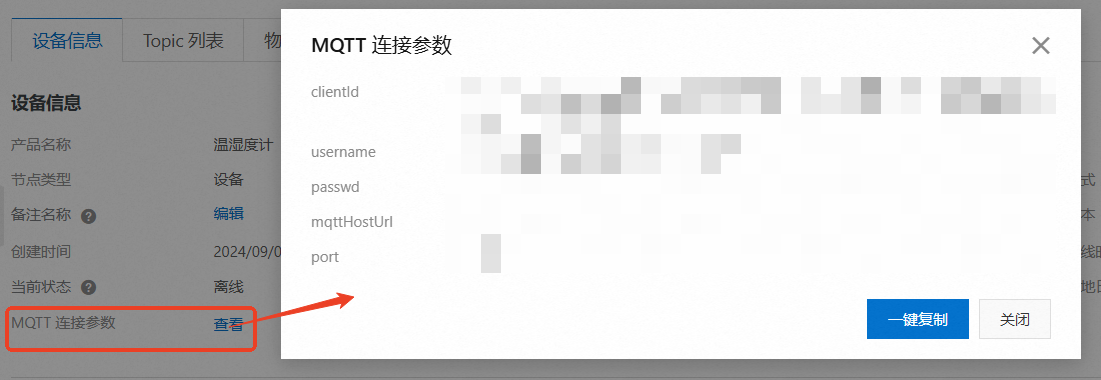 除了最后一个,其他的都可以在刚才说的MQTT连接参数中获取,直接复制过来就行