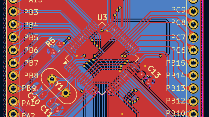在完成画板的工作之后,将KICAD的制版文件和孔位图上传到PCB的厂家,打了三块样版,来调试一下板子的功能是否正常,将引脚引出,配置了相关的外部晶振,和必要的滤波电容,在搭配按键来实现我们的相关引脚操作。添加了一块串口CH340N,可以直接通过TYPEC来实现串口的读写,方便我们的开发调试信息接收处理。
