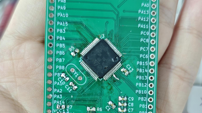 在得捷购买的主控到了,开始焊接。由于手上没有洗板水,导致板子上的焊油比较多。