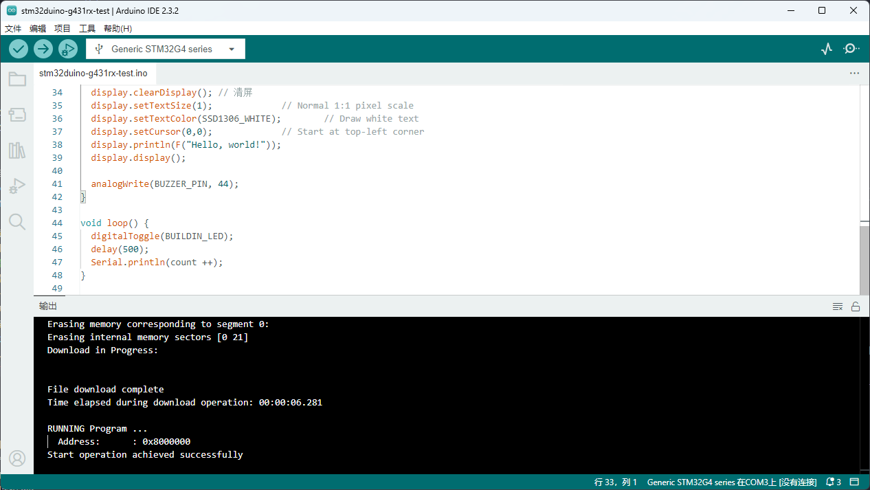 - Arduino IDE:提供STM32G431专用Arduino核心,支持直接编译和下载。