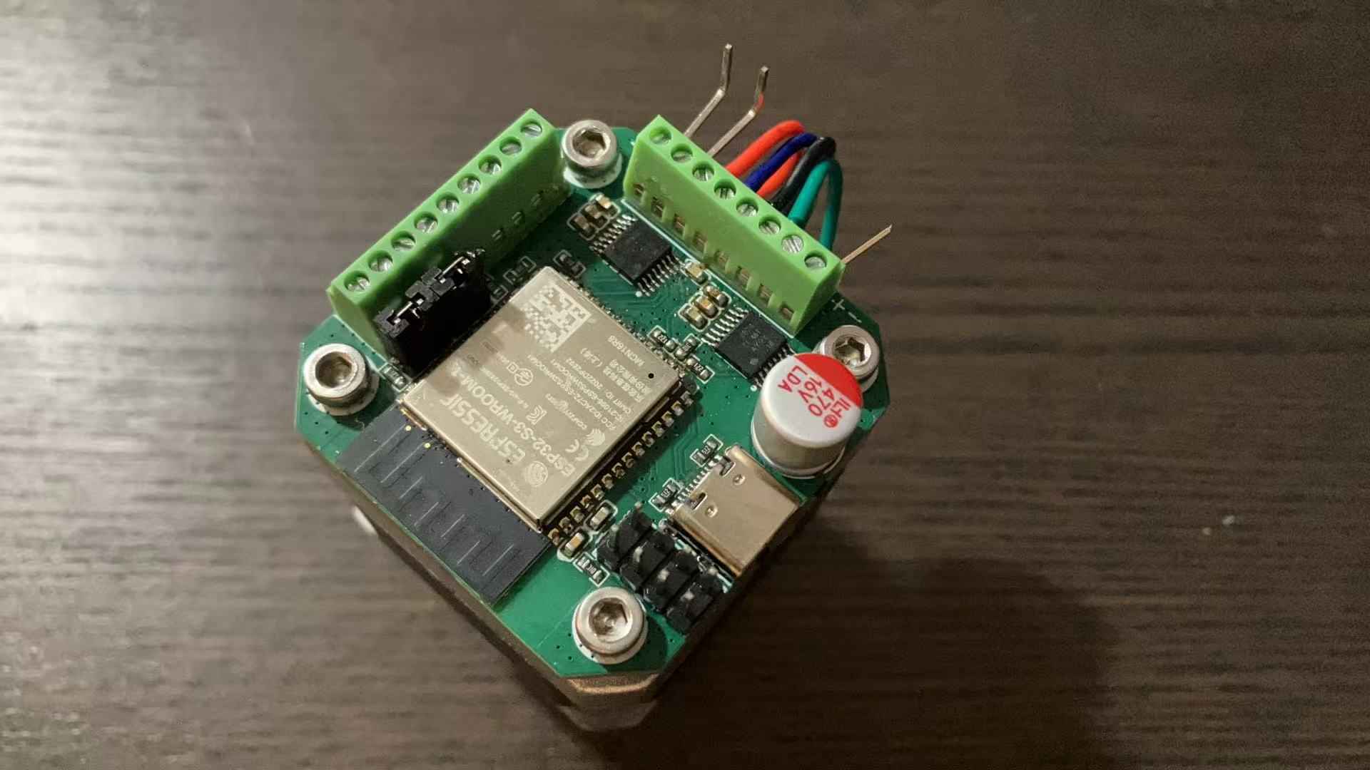 这是一款安装在42步进电机背面的FOC驱动器,与电机相同尺寸,支持电流环、速度环、位置环三环FOC控制,支持多种通讯接口,包括CAN,MODBUS,RS485,UART,I2C以及常见的EN、DIR、STP控制,以及基于WIF的MQTT。