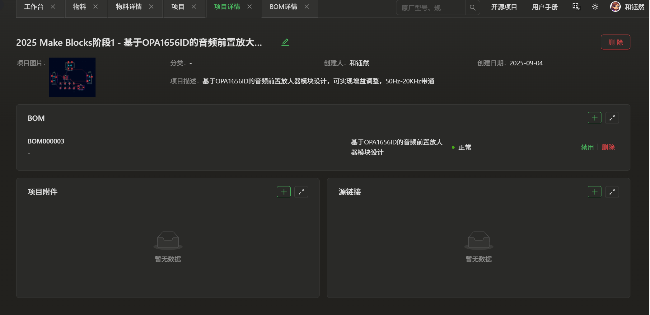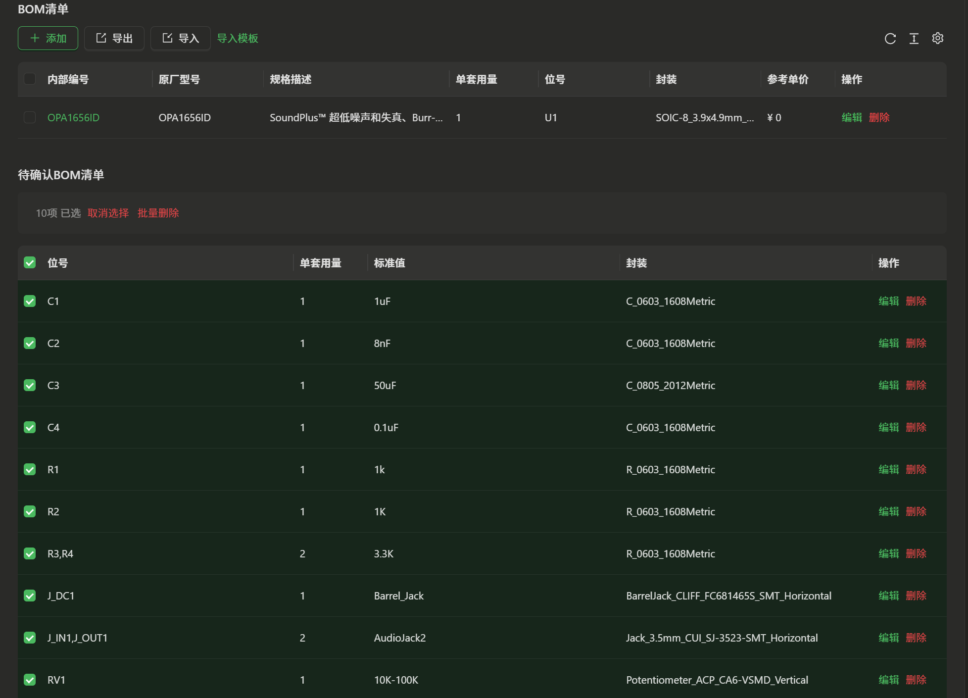 使用了eZ-PLM系统上传了自己的工程文件,方便保存记录各个版本,也可随时查阅,系统里查阅不到的物料也支持手动添加。