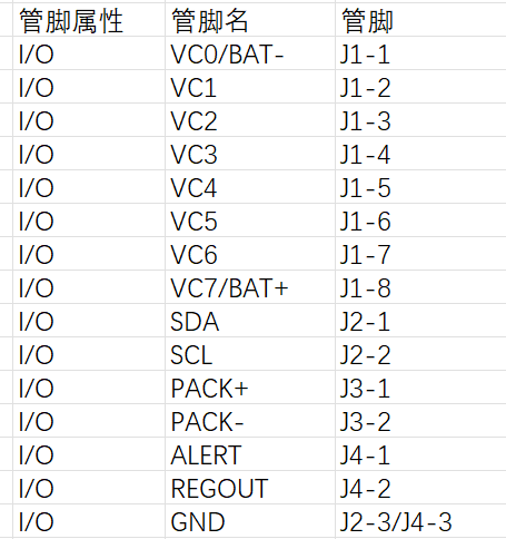 J2的PIN1和PIN2是该电池管理模块的IIC接口端,PIN1为SDA,PIN2为SCL,PIN3为地。