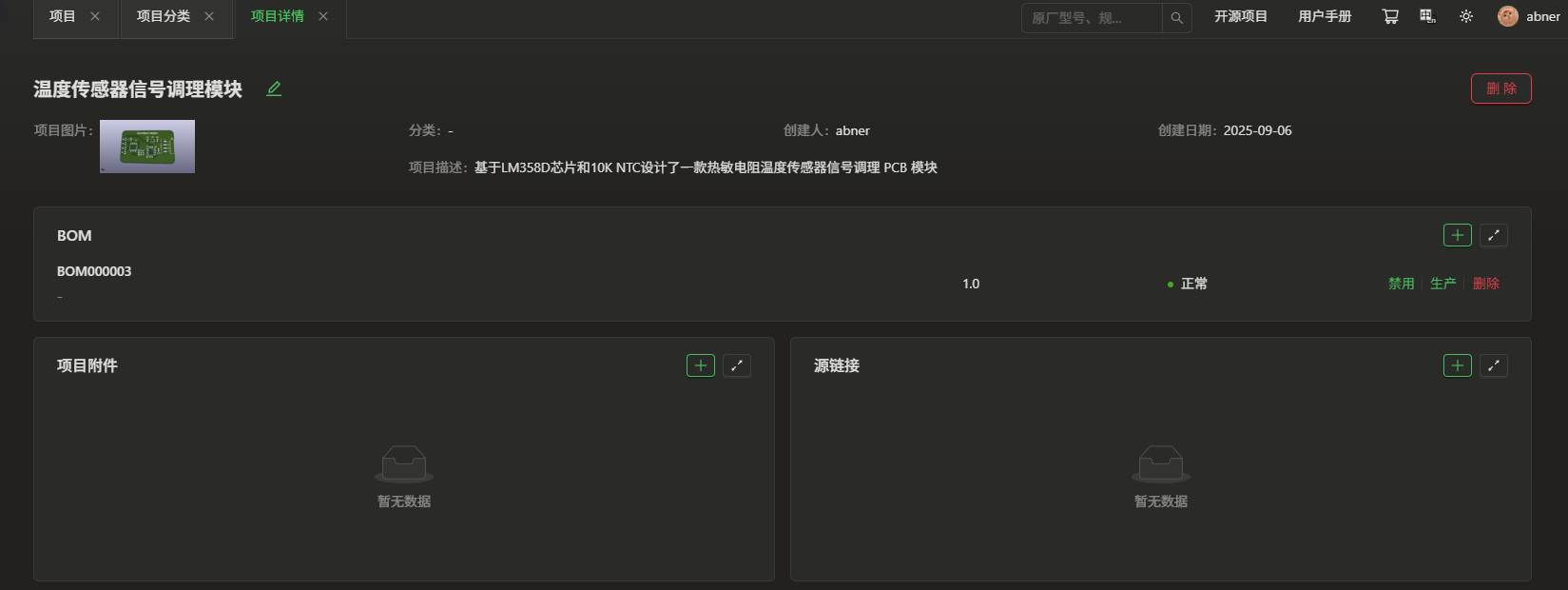 使用了eZ-PLM系统上传了自己的工程文件,方便保存记录各个版本,也可随时查阅,系统里查阅不到的物料也支持手动添加。