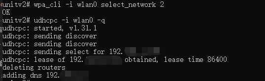 ⑦获取动态IP:udhcpc -i wlan0 -q