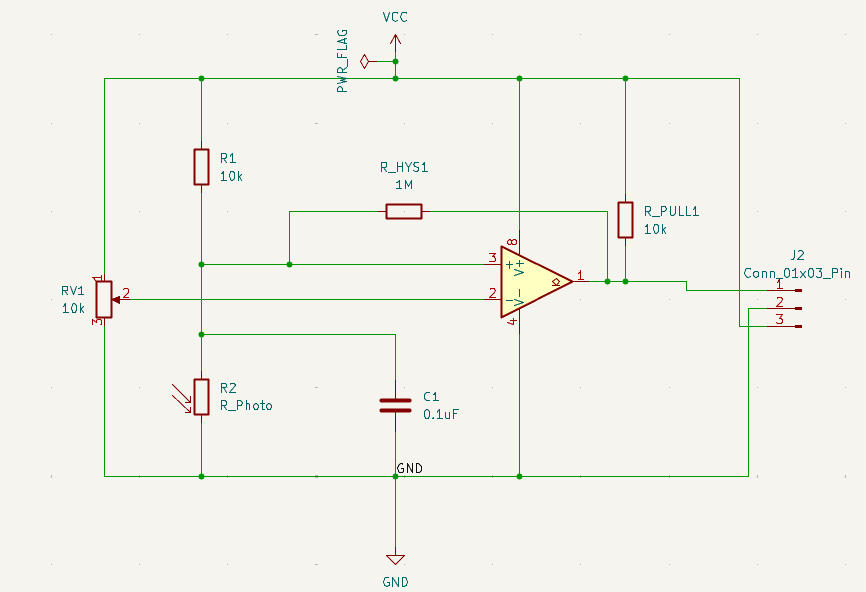 2025 Make Blocks阶段1 - 光控开关模块设计该项目使用了Kicad软件,实现了一个光控开关的设计,它的主要功能为:板上有一个光敏电阻,一个可调电位器,输入光信号后转化为数字信号,可以调节阈值。