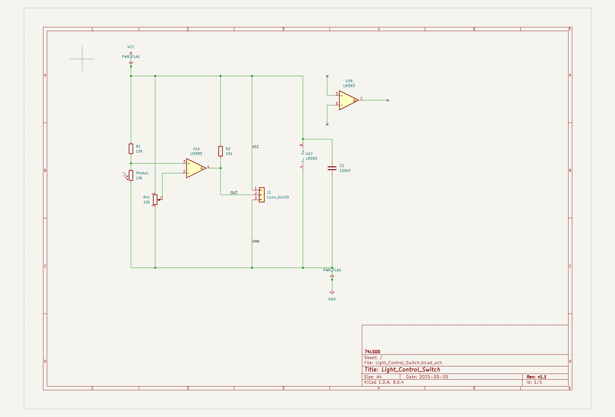 - R1 和 PHOTO1 (光敏电阻) 组成传感电压分压电路。