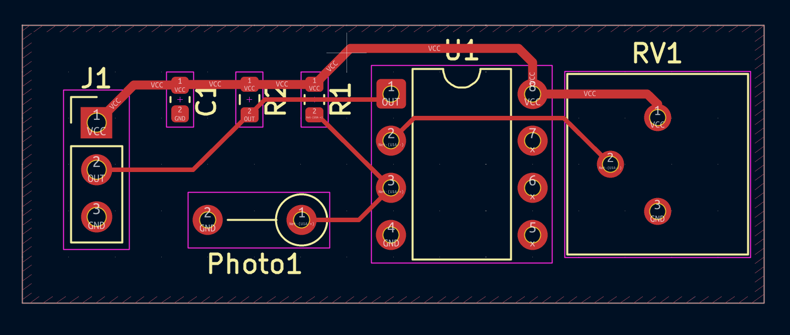 - J1 是一个连接器,用于连接电源 (VCC, GND) 和输出信号 (OUT)。