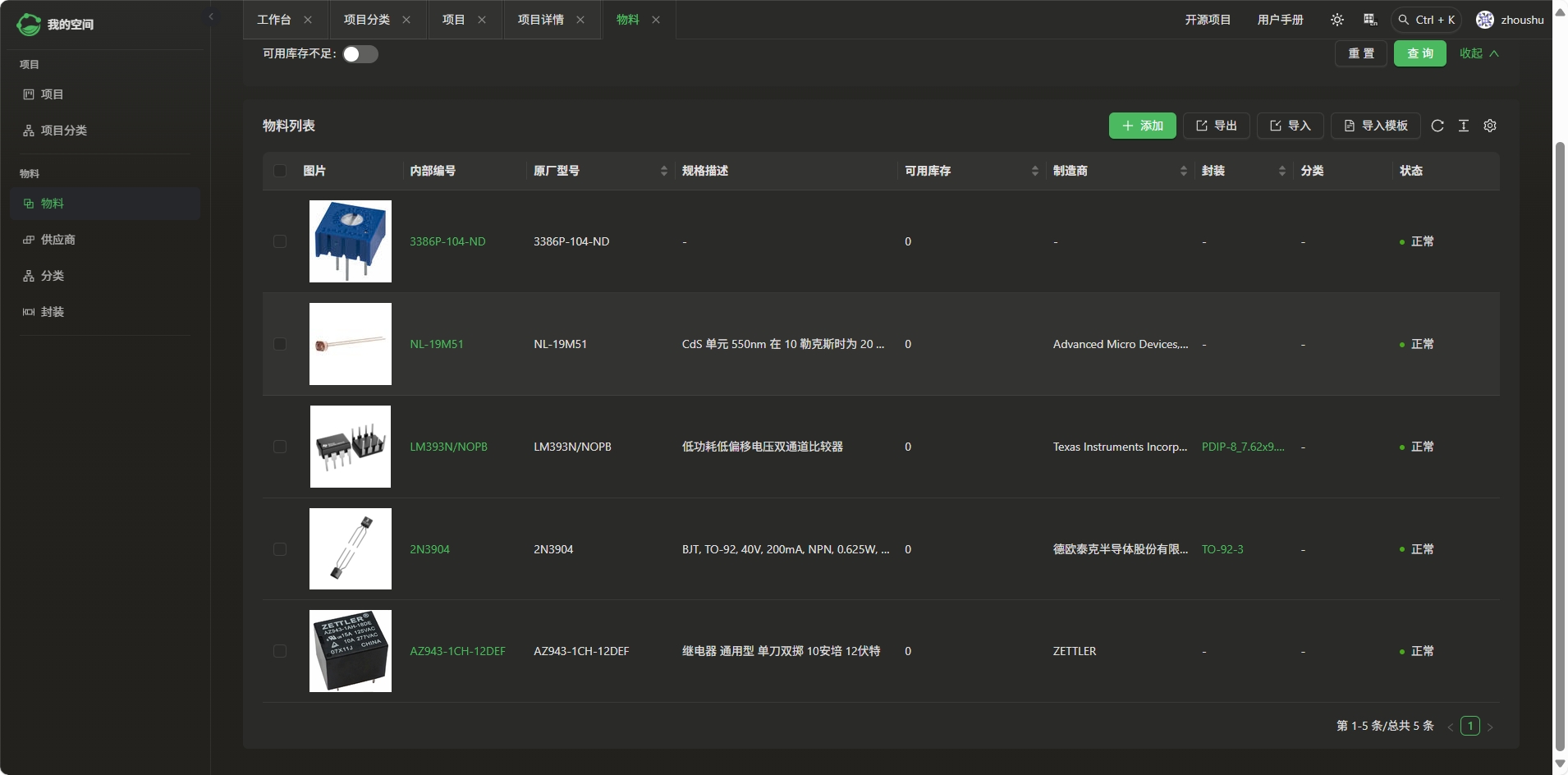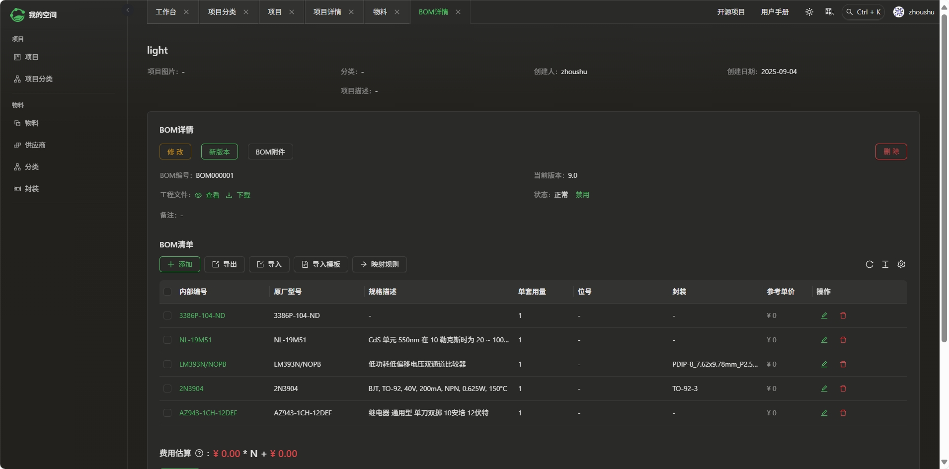 使用了eZ-PLM系统上传了自己的工程文件,方便保存记录各个版本,也可随时查阅,系统里查阅不到的物料也支持手动添加。