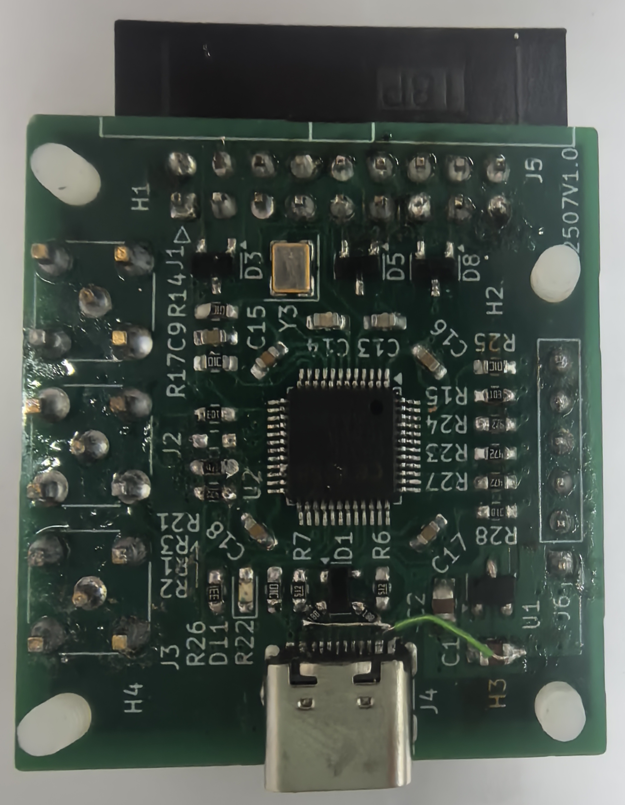 因为疏于检测,用于USB设备识别的两个上拉电阻忘记了,只能用飞线大法解决了...尴尬。还好都是用的0603电阻,焊起来好焊一些。