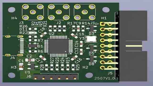 根据任务要求本次我选用的是STM32F103CBT6芯片设计了一款USB转换器,此板卡主要用于USB转换成IIC/SPI/UART/485/CAN/SWD信号,并可生成3路时钟信号,常用于电路模块的采集和调试。