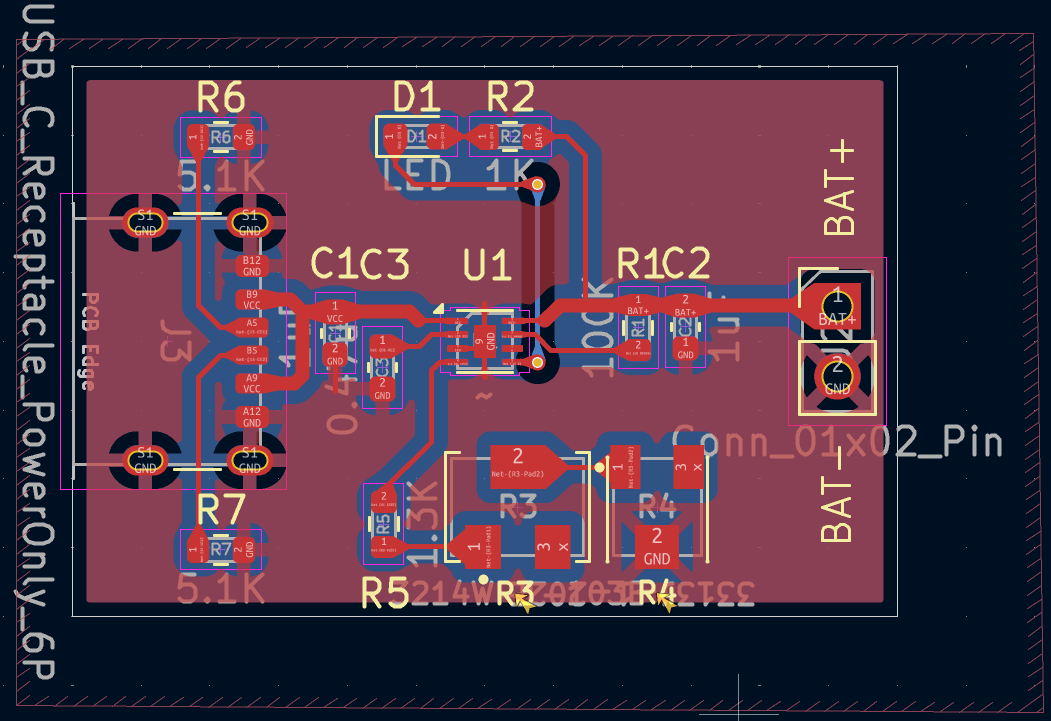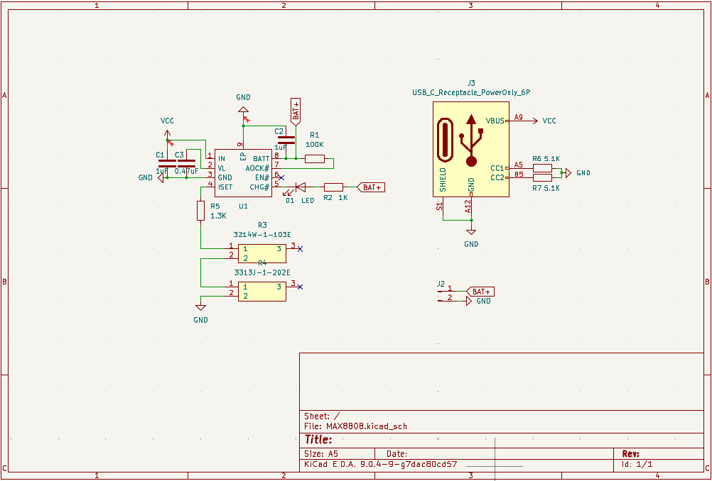 我根据任务,基于MAX8808X芯片一个支持USB-C接口的单节锂电池充电模块
