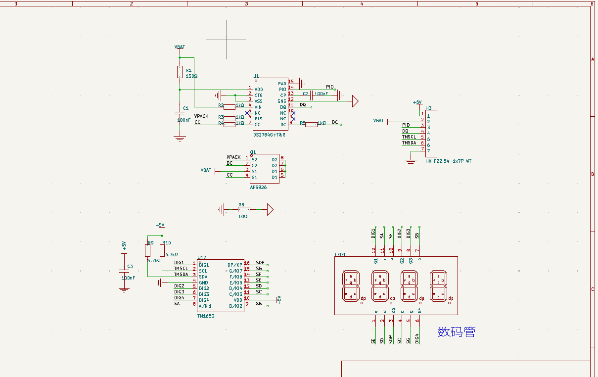 本模块具有4位数码管显示,可以用于低电量报警和显示实时电量。其中数码管显示部分采用TM1650,它是一个I2C接口的数码管驱动芯片。其中电量采集芯片使用的是ADI的DS2784G+T&R,它可以根据库仑计数、放电速率、温度和电池特性估算可用容量,实现精确的电量采集功能。DS2784G+T&R具有以下特点:DS2784的工作电压范围为2.5V至4.6V,适用于采用单节锂离子(Li+)或锂聚合物电池的电池组。可用容量以mAh和百分比形式报告。内置的Li+保护功能和基于SHA-1的质询-响应认证机制确保了安全运行。 通过对电压、温度和电流进行精确测量,结合电池特性和应用参数来估算容量。可用容量寄存器会根据当前温度和放电速率,保守估算可释放的电量。 除了用于电池补偿和应用参数的非易失性(NV)存储外,还提供16字节的EEPROM存储器供主机系统和/或电池组制造商专用。这便于进行电池批次和日期跟踪,或非易失性存储系统或电池使用统计数据。 1-Wire接口提供16kbps或143kbps的串行通信,用于访问数据寄存器、控制寄存器和用户存储器。此外,1-Wire通信支持在基于哈希的消息认证码(HMAC)认证协议中使用SHA-1作为哈希算法进行质询-响应电池组认证。