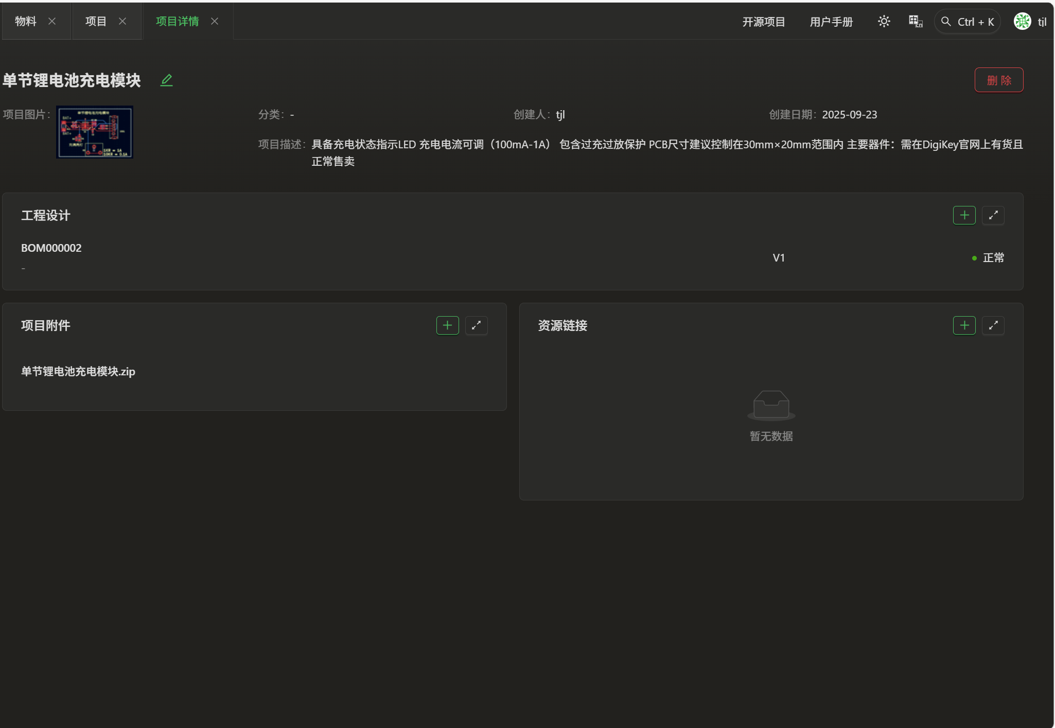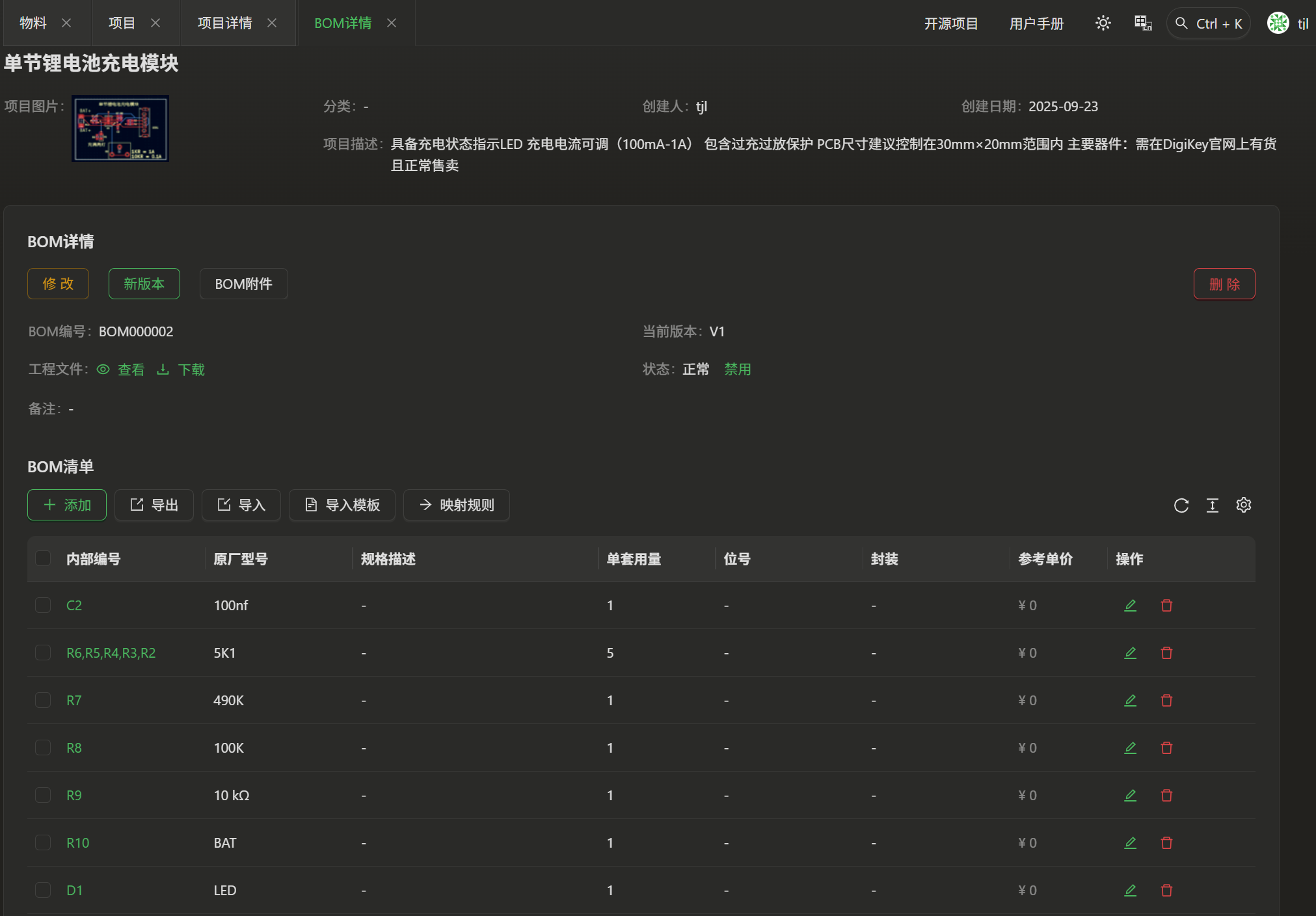 使用了eZ-PLM系统上传了自己的工程文件,方便保存记录各个版本,也可随时查阅,系统里查阅不到的物料也支持手动添加。