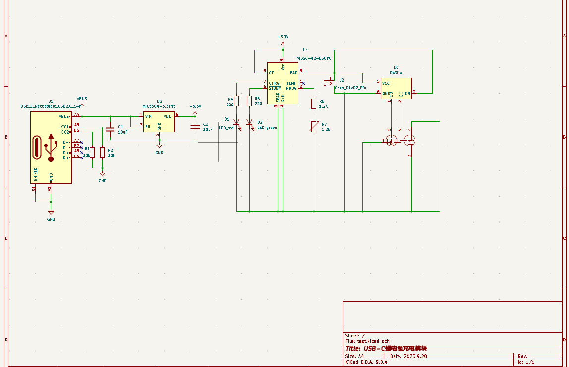 总之,这次 USB-C 锂电池充电模块实验,是一次 “理论与实践的深度融合”,也是一次 “从学生思维到工程思维的转变”。它让我明白:电子设计没有 “一蹴而就”,只有 “精益求精”,每一个管脚的连接、每一个元件的选择、每一次调试的优化,都是通往 “可靠产品” 的必经之路。