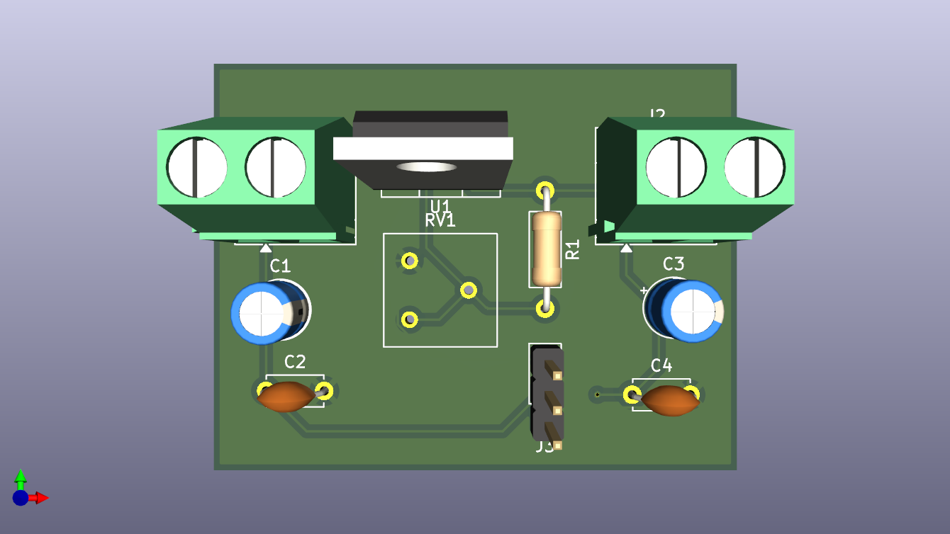 本次任务是设计一个输入电压范围为 7 - 15V,输出电压可在 1.25 - 12V 之间调节的线性稳压模块。该模块需满足最大输出电流 1A 的要求,同时具备输出电压数字显示以及过流保护功能,并且 PCB 尺寸建议控制在 45mm×35mm 范围内,主要器件需在 DigiKey 官网有货且正常售卖,PCB 设计工具使用 KiCad。此模块可应用于对电源稳定性要求较高的小型电子设备,如低功耗传感器节点、小型嵌入式系统等,为其提供稳定可调的工作电压。
