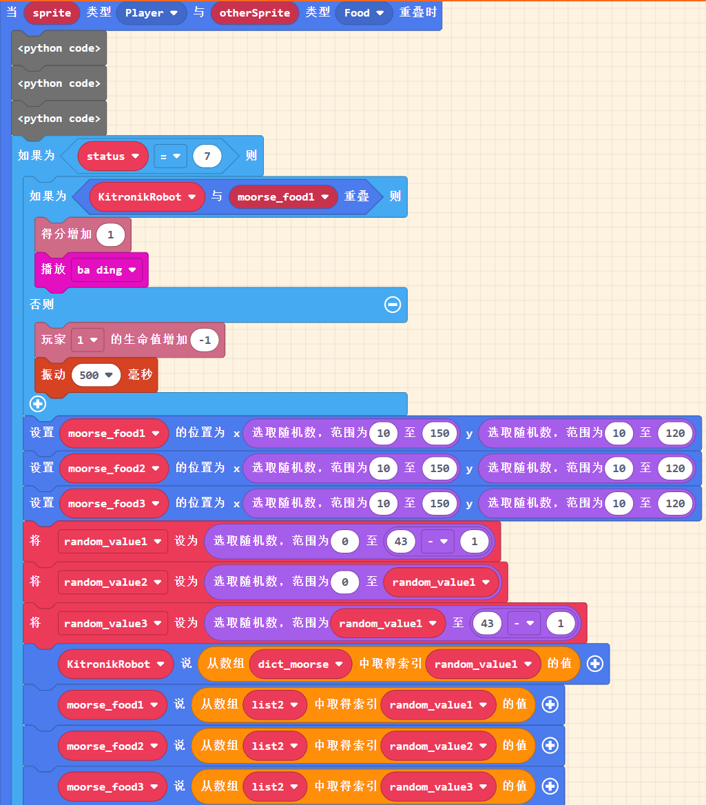 无限循环用来控制整个游戏整体的调度,主体就是if else的逻辑判断和各种status标志位参数的给定。部分截图如下。