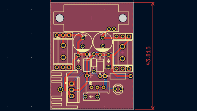 - 发热元件考虑: 核心稳压芯片 U1(LM317T) 在工作时会产生热量,因此其周围预留了足够的空间,并在其引脚和散热板区域使用了更宽的铜箔,以辅助散热。同时,板上设计了两个M3安装孔,方便用户根据需要加装散热片。
