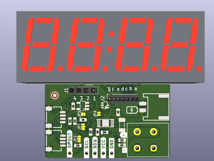 - 3D 效果图:数码管居上,接口居下,便于观察与接线。