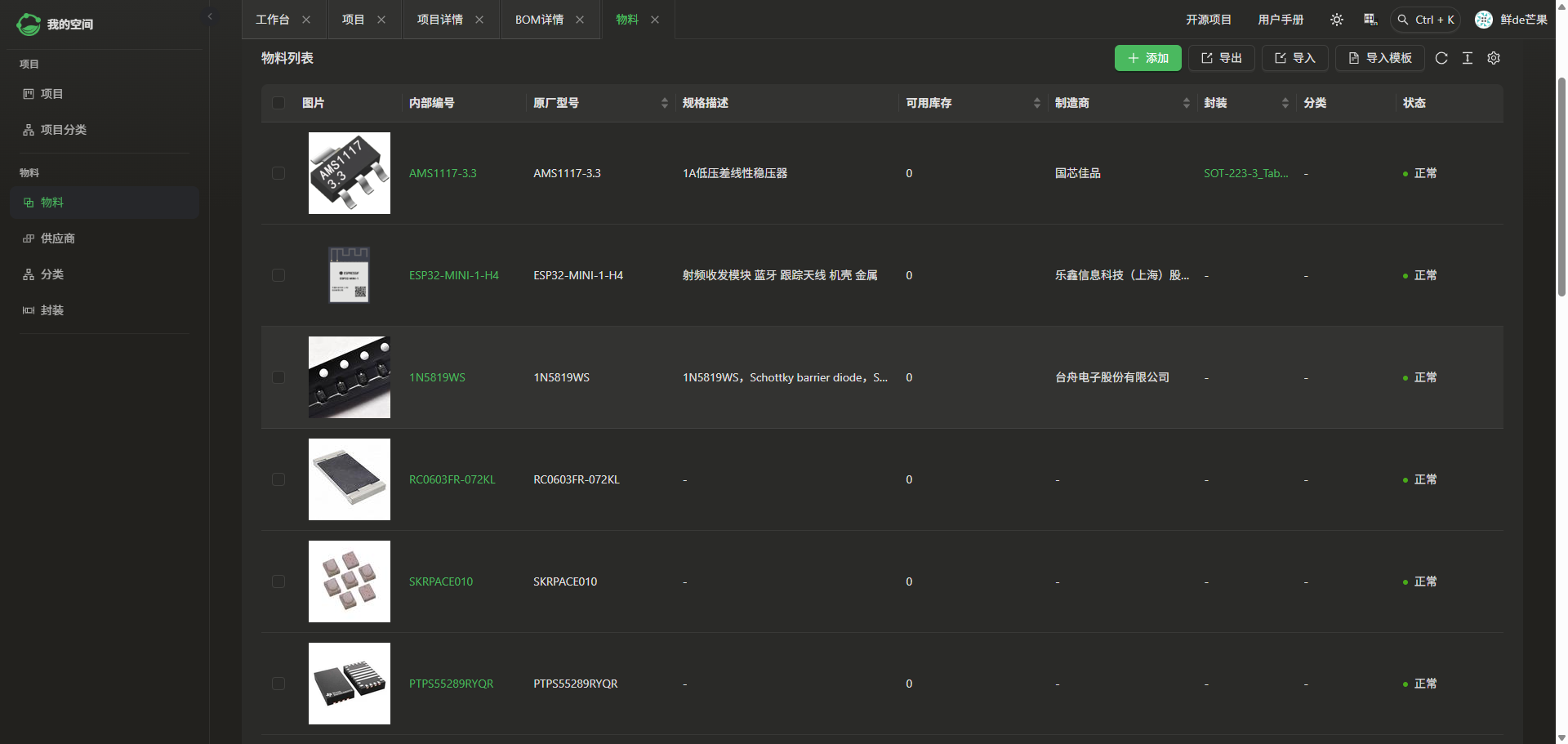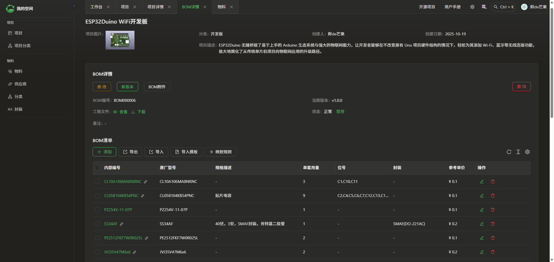 使用了 eZ-PLM 系统上传了自己的工程文件,方便保存记录各个版本,也可随时查阅,系统里查阅不到的物料也支持手动添加。