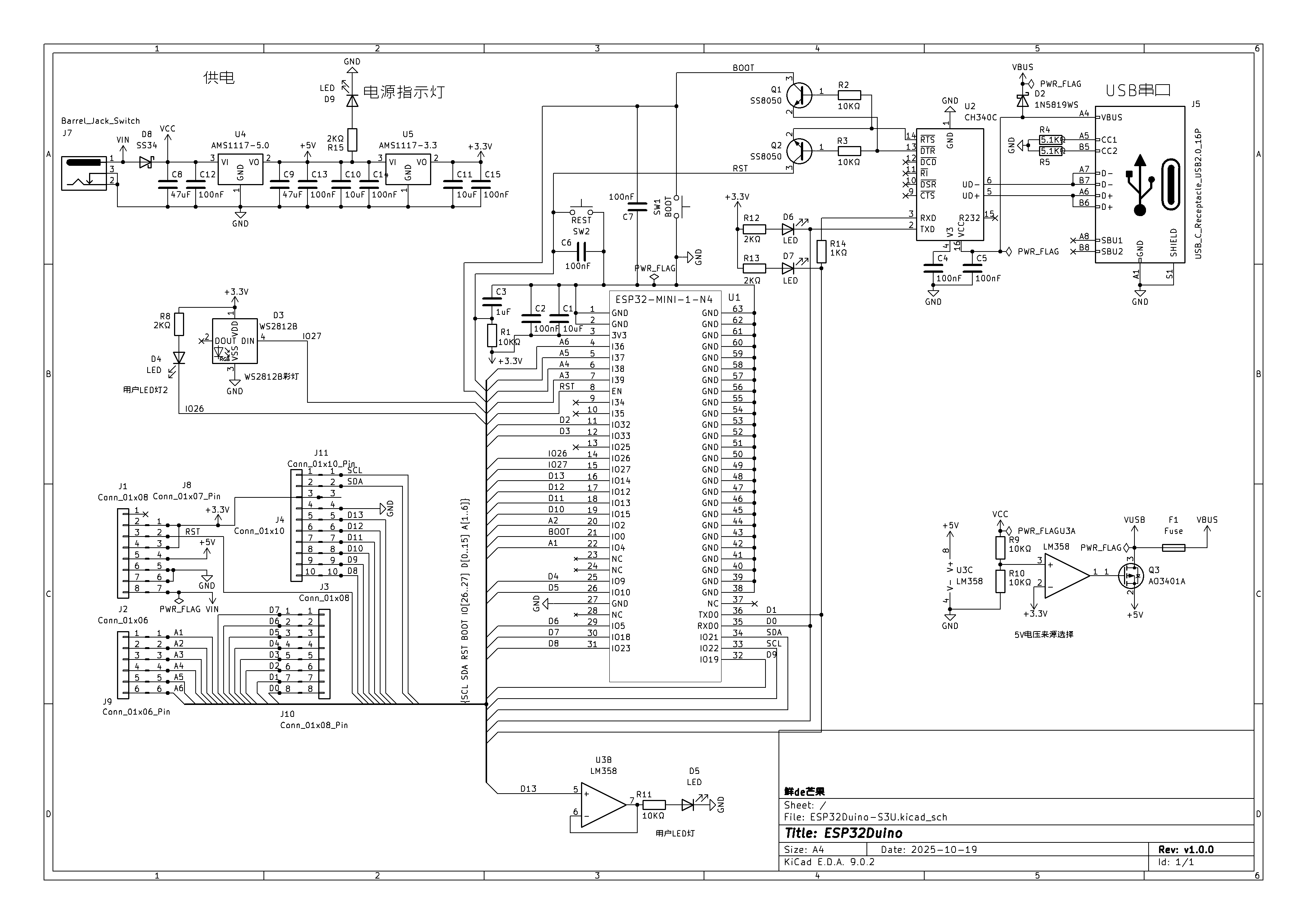 - USB to UART:集成CH340C芯片,实现USB串口通信(兼容Arduino编程协议)。
