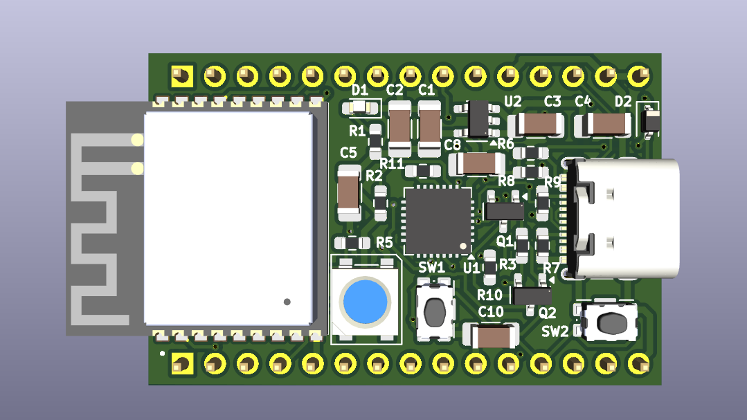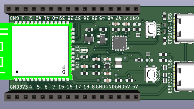 - 包含:USB转串口、复位/烧录电路和板载天线