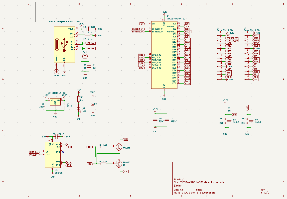 - 主要器件:ESP32-WROOM-32E-N4