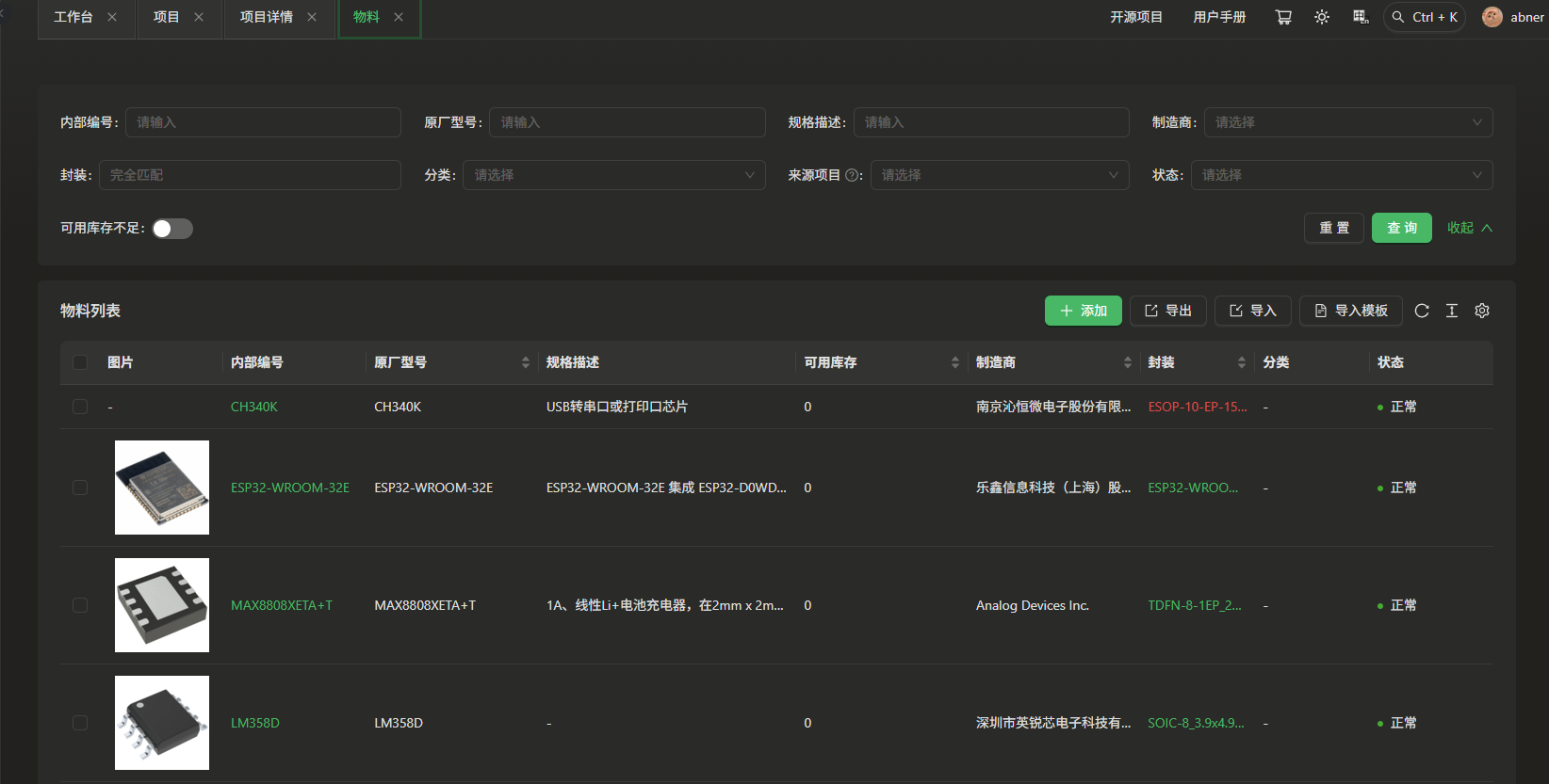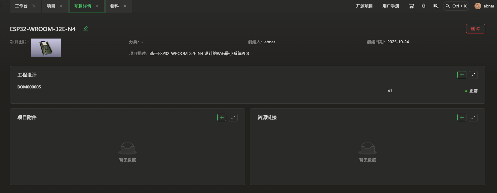 使用了eZ-PLM系统上传了自己的工程文件,方便保存记录各个版本,也可随时查阅,系统里查阅不到的物料也支持手动添加。