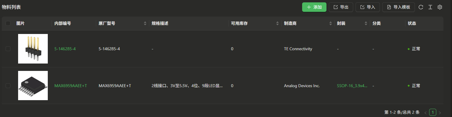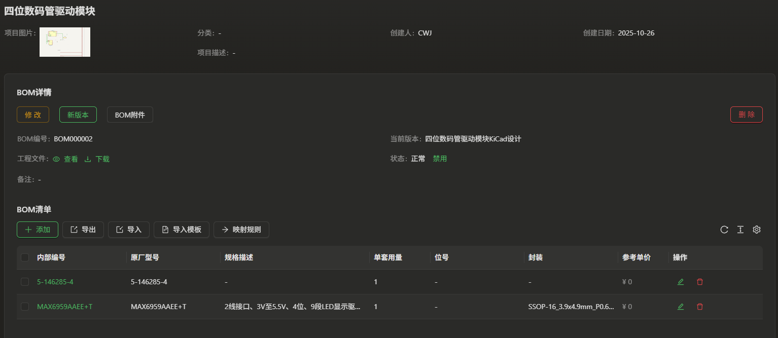 使用了eZ-PLM系统上传了自己的工程文件,方便保存记录各个版本,也可随时查阅,系统里查阅不到的物料也支持手动添加。