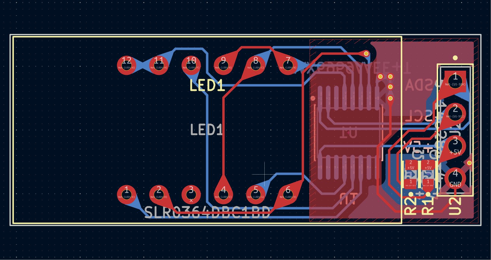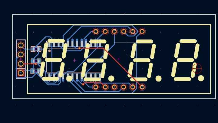 参与 2025 Make Blocks 限时挑战赛,使用 KiCad 设计基于 MAX6959AAEE+T 芯片的四位七段数码管驱动模块,是一次充满挑战与收获的经历。起初,我先仔细研读 MAX6959 的 datasheet,明确其 2 线串行接口(I2C)的通信逻辑、亮度调节的寄存器配置方式,以及与四位七段数码管的引脚对应关系 —— 芯片的段选输出需精准对接数码管的 a-g 段,位选引脚则控制四个数码管的分时点亮,这为原理图设计奠定了基础。在 KiCad 的 schematic 设计阶段,我先从元件库调用或绘制了 MAX6959、四位七段数码管、电阻等元件,重点关注电源回路的稳定性,将芯片的 VCC 引脚接 + 5V 电源,GND 引脚可靠接地,同时为 I2C 总线的 SDA 和 SCL 引脚配上 4.7kΩ 上拉电阻,确保通信信号稳定;考虑到亮度调节功能通过芯片内部 PWM 实现,只需预留通过 I2C 写入对应寄存器的控制逻辑,无需额外硬件,这让电路结构更简洁。进入 PCB 布局时,限时的压力促使我更注重效率,尽量缩短数码管与芯片之间的连线以减少信号延迟,将电源和接地线路加粗并靠近芯片,避免噪声干扰,同时控制模块尺寸以符合挑战赛的小型化要求,过程中通过 KiCad 的 ERC 和 DRC 检查及时排查了引脚错连、布线冲突等问题。这次设计不仅让我对 MAX6959 的驱动原理和 I2C 通信协议有了更深入的理解,也提升了使用 KiCad 进行原理图绘制和 PCB 布局的熟练度,更体会到限时挑战中快速迭代、精准验证的重要性 —— 从最初对芯片特性的生疏,到最终完成包含核心功能的模块化设计,每一步都离不开对细节的打磨和对问题的快速响应,这为后续的实际制作和调试积累了宝贵经验。
