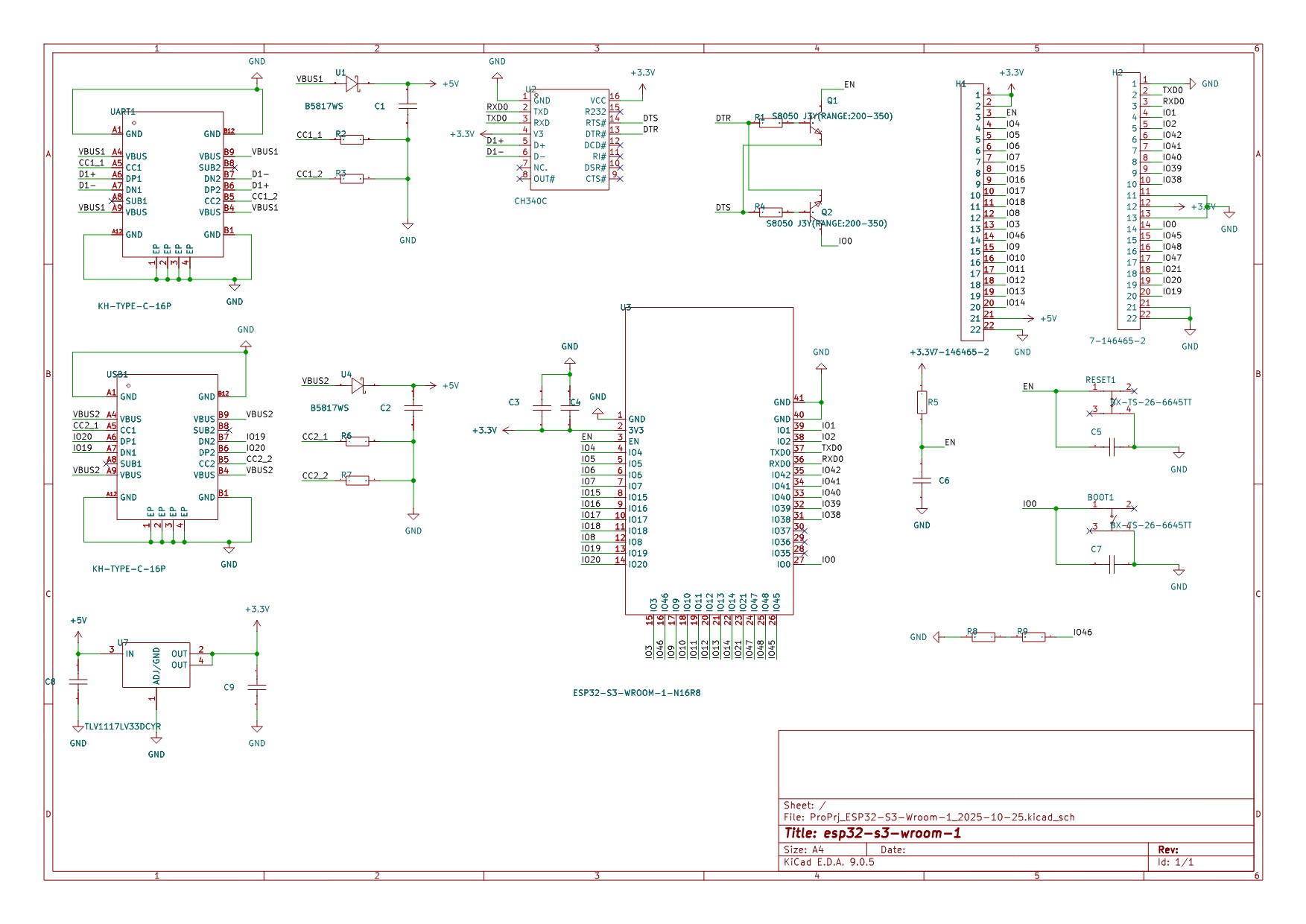 根据此次任务要求,我选择的是ESP32-S3-WROOM-1-N16R8模组设计了一块最小系统板pcb,该模组是一款通用型wifi+低功耗蓝牙mcu模组,搭载了ESP32-S3系列芯片,拥有丰富的外设接口,更具有强大的神经网络运算能力和信号处理能力,适用与多种使用场景。