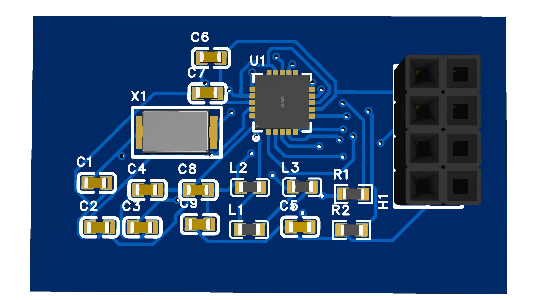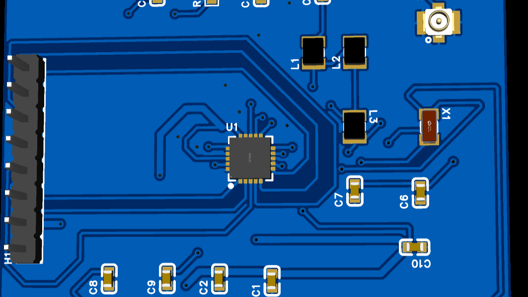 - 电源与地线采用**铺地处理**,增强抗干扰能力;高速信号(如SPI)与射频信号分开布线,降低串扰。
