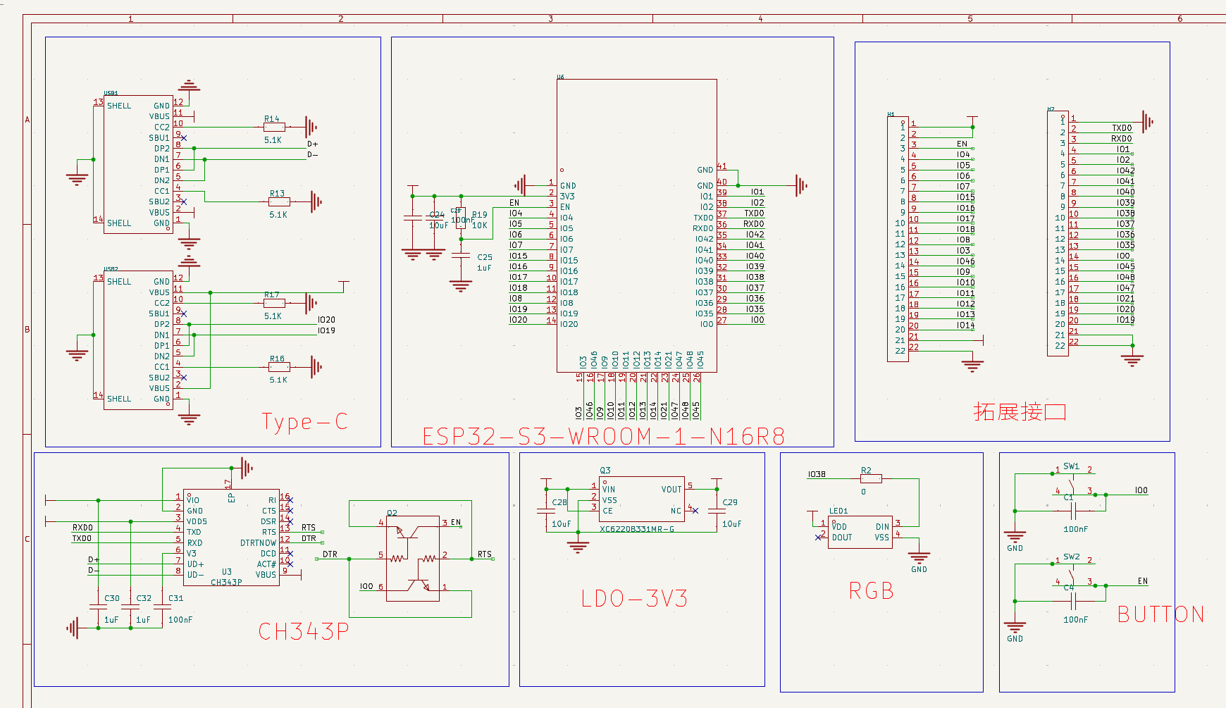 - 包含:USB转串口、复位/烧录电路和板载天线