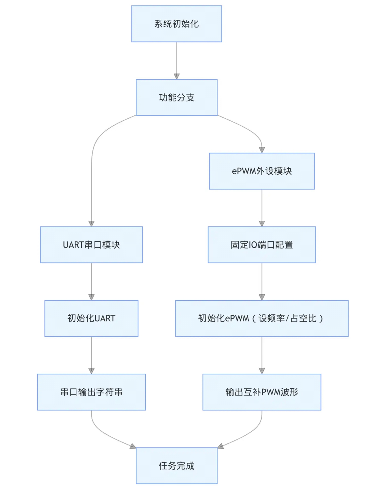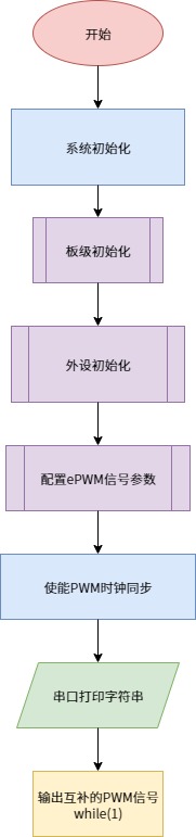 此任务要求使用增强型脉宽调制(ePWM)模块,在指定的 GPIO 端口上输出一对参数为频率 2MHz、占空比 50% 的互补 PWM 波形。