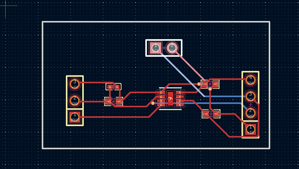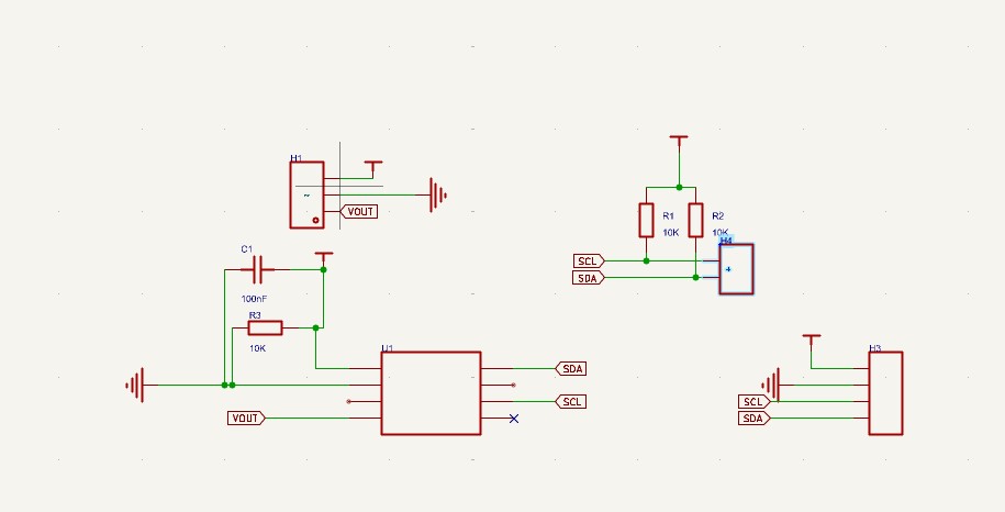 该PCB设计围绕NSPAD1N200DR04传感器核心功能展开,以**信号完整性、兼容性与可制造性**为核心思路。布局上,将传感器U1置于中心,周边紧凑排布电容C1、电阻R3(模拟输出滤波)及R1、R2(I2C上拉),缩短信号路径以减少干扰;接口H1、H3、H4分别对应模拟输出、I2C通信与电源,位置布局兼顾插拔便利性与布线合理性。布线采用单面板设计,优先保障电源与通信走线的通畅性,同时通过清晰的颜色区分(红/蓝线)明确电源与信号路径。此外,延续“灵活复用”设计理念,预留标准接口与合理的器件间距,既支持与NS800RT5039开发板、“12指神探”扩展板的兼容对接,也便于单独拆用,在满足功能需求的前提下,兼顾了生产焊接的便捷性与后期维护的可操作性。