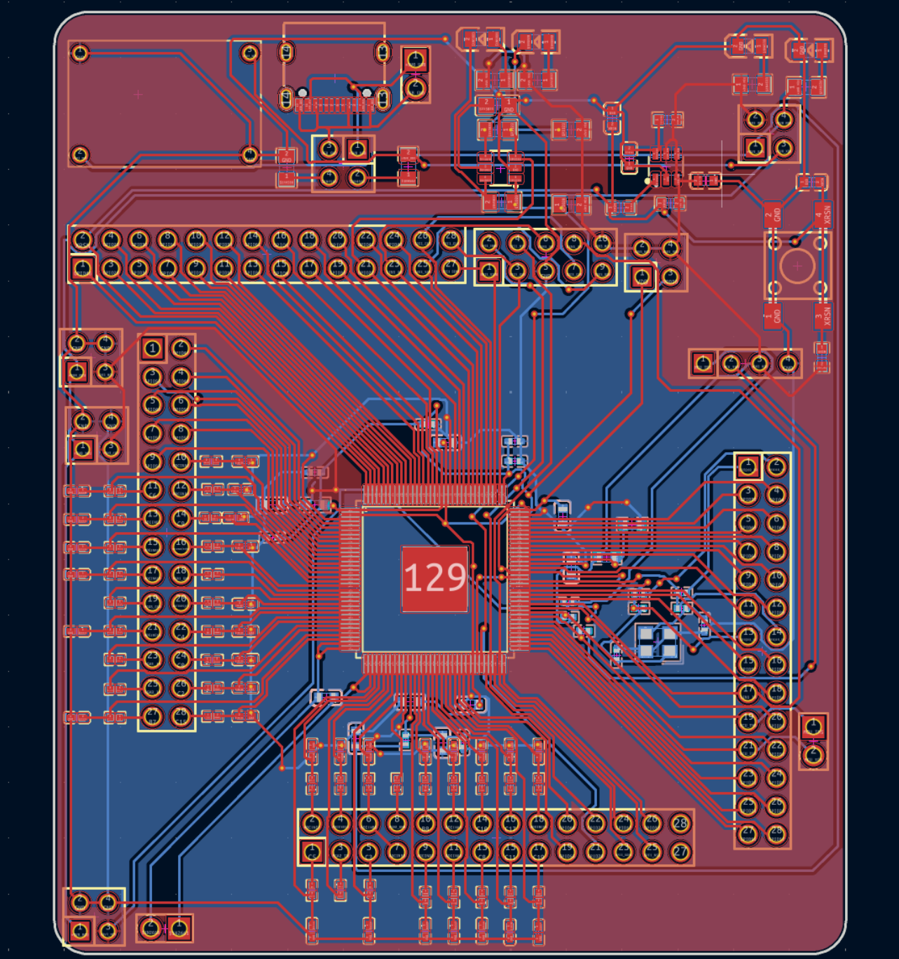 - 布局:核心芯片居中,电源模块、数字模块、模拟模块分区布局,减少干扰;