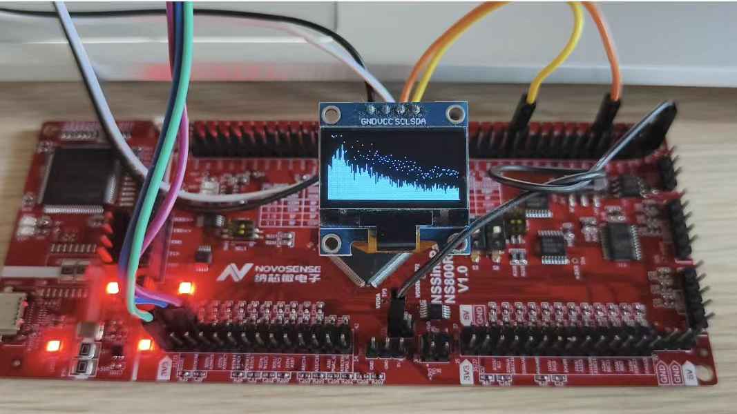 - 音频处理:麦克风采集音频信号,经 eMath 核完成 FFT 变换,将频谱数据映射到O LCD 屏;