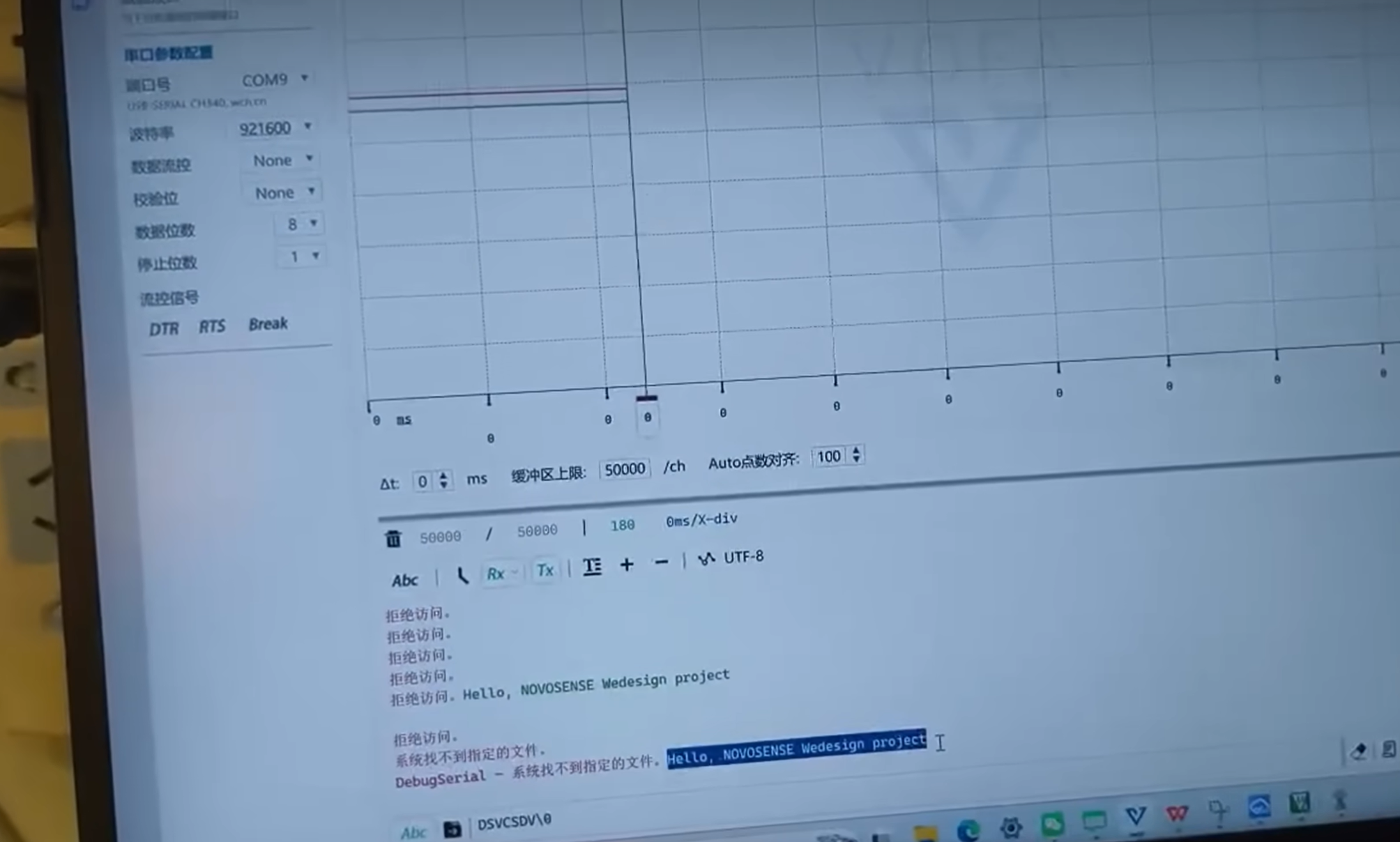 - 串口输出:PC 串口助手稳定显示 “Hello, NOVOSENSE Wedesign project.”,波特率 115200,无丢包;