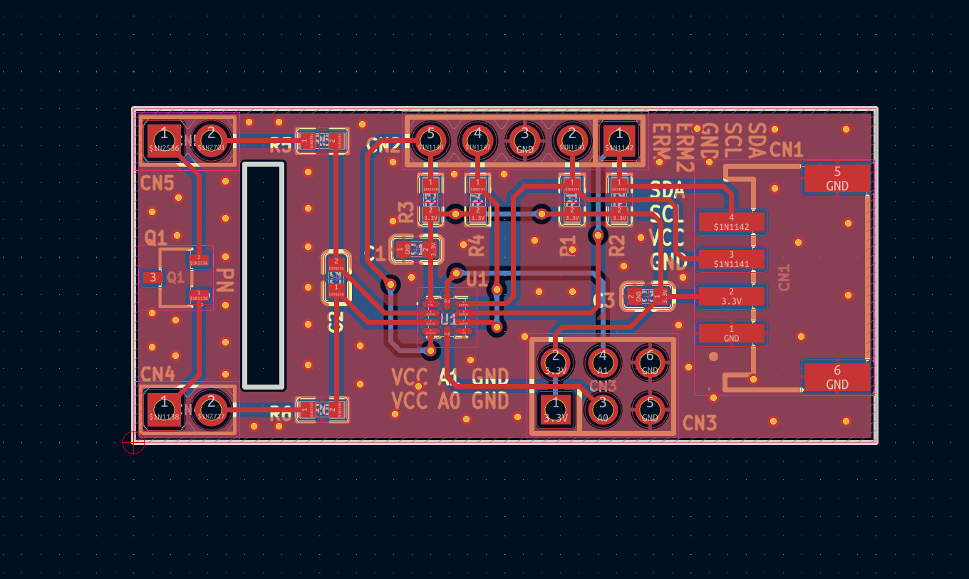 在原理图设计中我们选用了PH2.0-4作为主要的控制接口,同时为了监测连接方便,我们将IIC的接口又通过2.54插针引出(这里主要是考虑十二指的外接接口便捷性),远程温度提供了板载三极管,同样支持远端接口的连接。