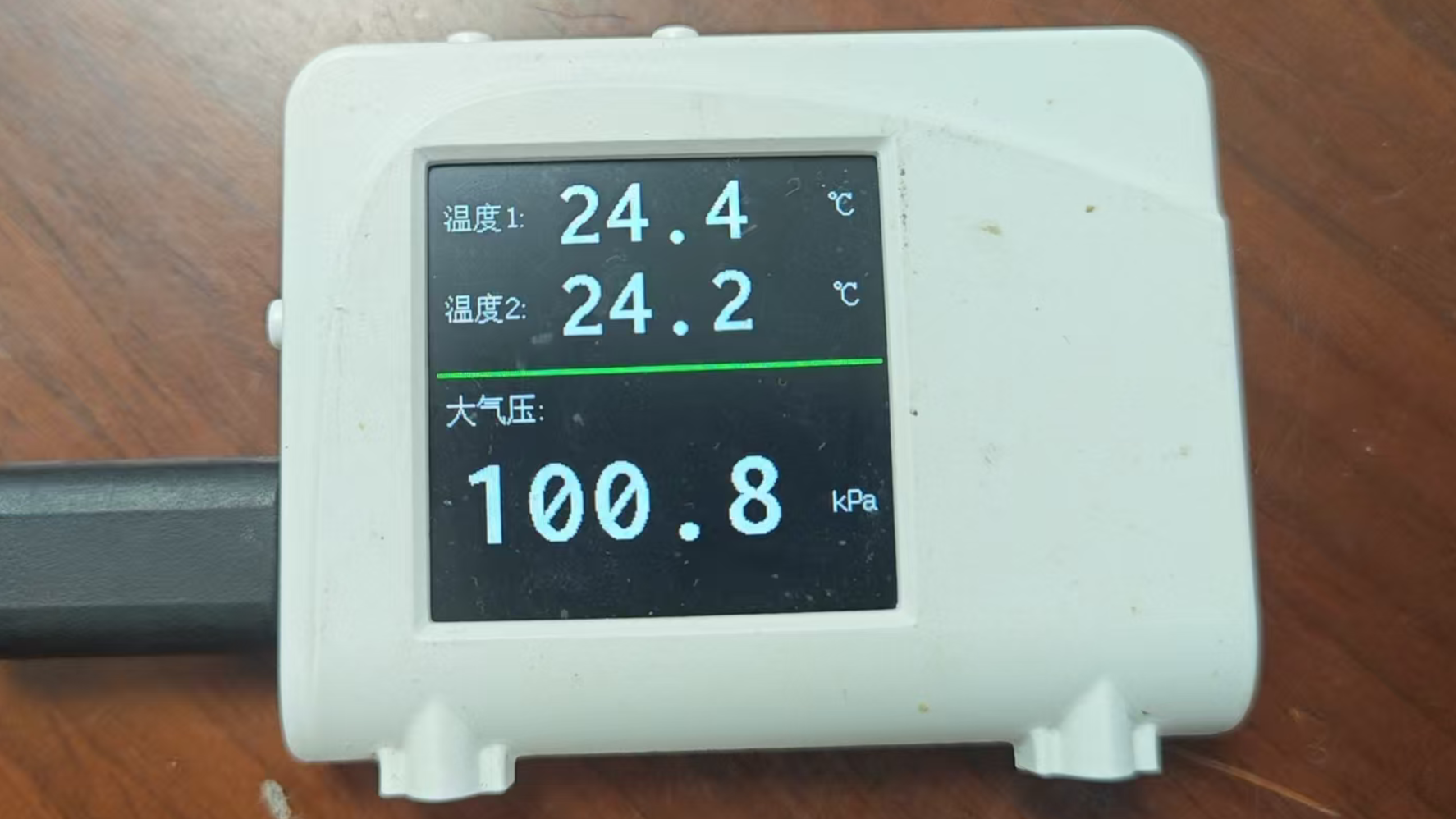 以下的实物温度展示图和我自己做的温湿度温度计误差在范围内,清晰展示出本地和远程的温度。