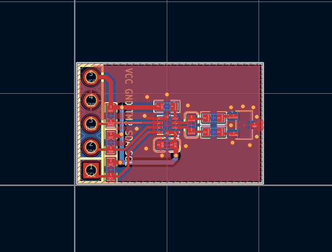 - SCL(U1.9)、SDA(U1.8)分别通过R1、R2(10kΩ)上拉到VCC,并连接到H1.1、H1.2,实现I²C通信。