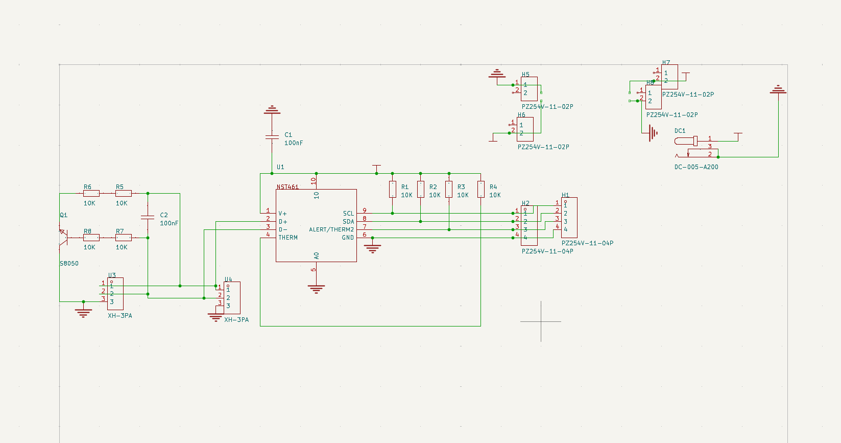 本项目是使用NST461-DQNR 芯片与纳芯微NS800RT5039评估版搭配十二指针神探设计的一个温度传感器,原理图与PCB绘制均采用KiCad绘制。本项目主要功能包括:读取本地温度和远程温度,串口输出数据,并在串口软件完成温度曲线图绘制.