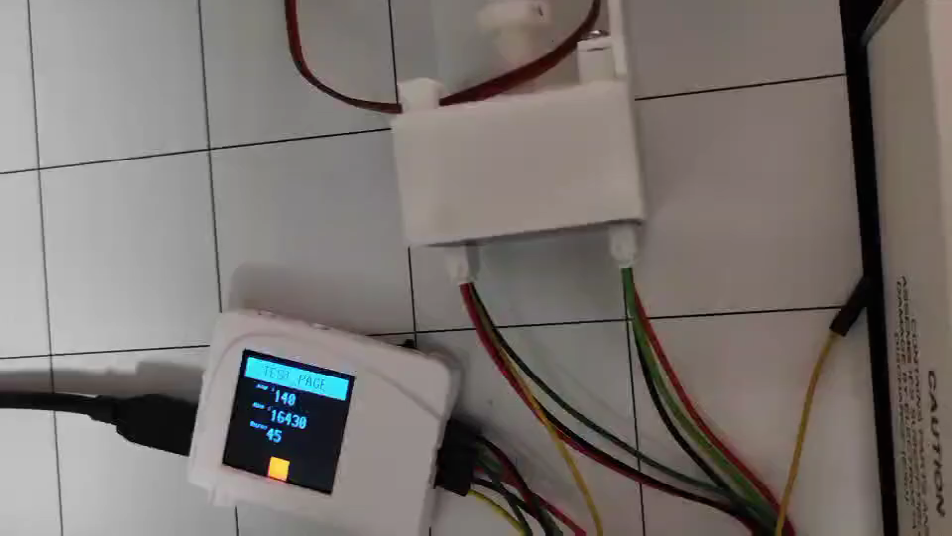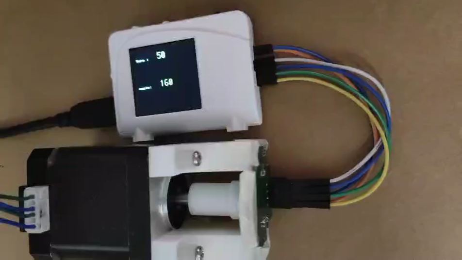 由于显示模块不是专门为这个主控板设计的,我们在驱动连接的时候是通过杜邦线进行的连接.传感器板固定在纸壳的表面,内部是一支笔,在笔的顶端放置了一个磁铁,我们通过旋转磁铁来让传感器数据采集发生变化。